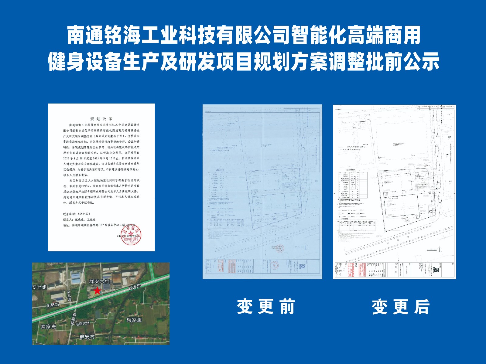 南通銘海工業(yè)科技有限公司智能化高端商用健身設(shè)備生產(chǎn)及研發(fā)項(xiàng)目規(guī)劃方案調(diào)整批前公示