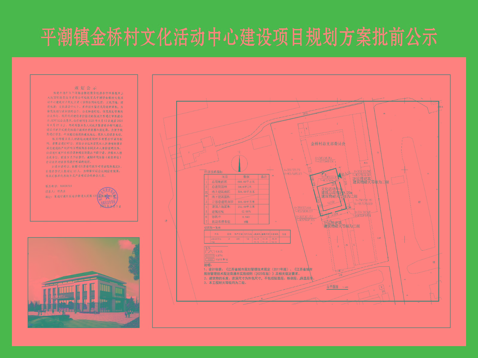 南通市通州區(qū)平潮鎮(zhèn)金橋村股份經濟合作社平潮鎮(zhèn)金橋村文化活動中心建設項目規(guī)劃方案批前公示