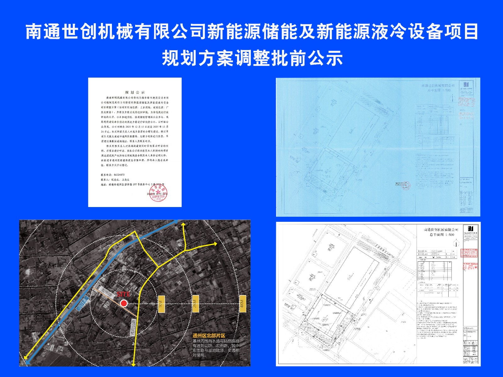 南通世創(chuàng)機(jī)械有限公司新能源儲能及新能源液冷設(shè)備項目規(guī)劃方案調(diào)整批前公示